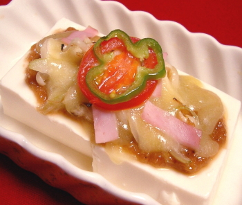 絹豆腐……1/2丁 玉ねぎ……20g ピーマン……5g 生しいたけ……1枚 しめじ……10g えのき茸……20g ミニトマト……1個 ハム……1/2枚 塩・こしょう……少々 バター……小さじ1 ナチュラルチーズ…20g ★ごま味噌 白すり胡麻……大さじ1 みりん……小さじ2 仙台味噌……小さじ2 (佐々重では「みかく味噌」をおすすめ)※味噌の量は、お好みで調整してください。